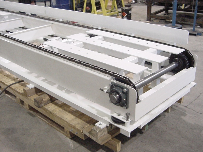 Rugged, low‑speed systems that pull product or scrap across a deck. Great for castings, stampings, bins, and totes—especially where debris would foul rollers.