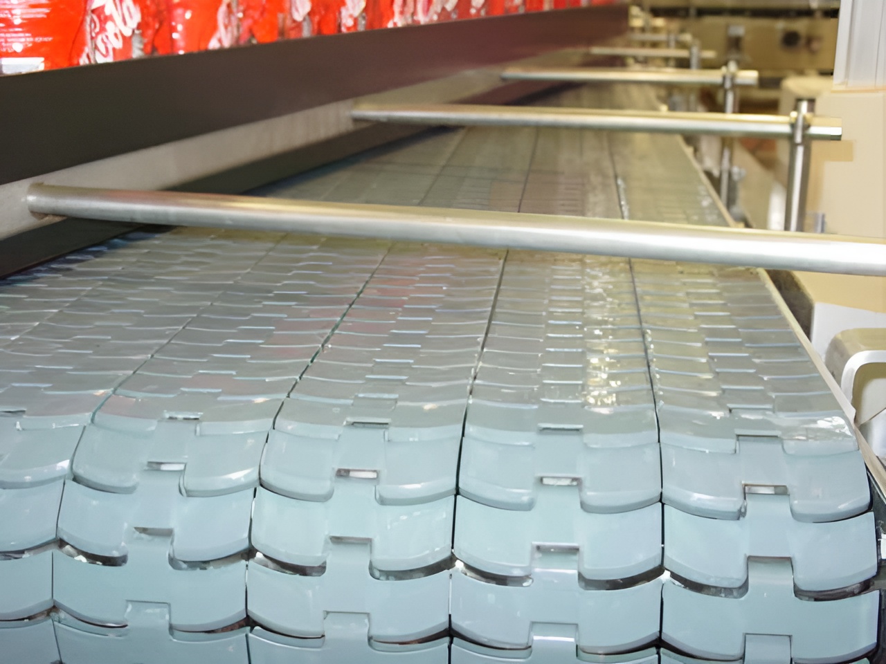 Regular inspection of chain tension and lubrication, sprocket wear checks, and cleaning of debris pans or drip trays. With proper care, chain and wear strips have long service lives.