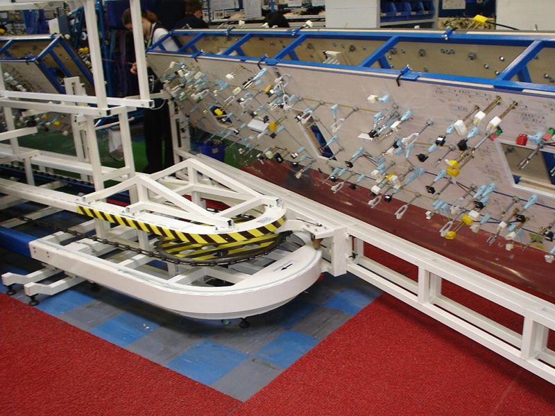Two parallel Roller Chains carry Pallets, Jigs, or Skids. Ideal for Assembly cells, Paint Lines, machine loading, and buffering. Offers precise stop locations and easy accumulation.